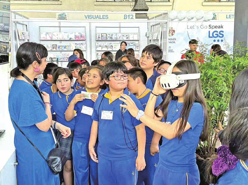 圖為小讀者在書展期間體驗(yàn)中國展區(qū)內(nèi)的閱讀“黑科技”。